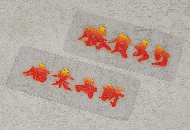 Mit einer Auswahl an Text- und Hintergrundplatten kannst du die berühmte Szene aus der Episode „The Tournament of the Seven Blade-Master Heroic Spirits“ nachstellen, und die Teile können auch in verschiedenen anderen Kombinationen verwendet werden, um verschiedene Situationen im Nendoroid-Format nachzustellen!